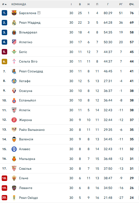 Турнірна таблиця Ла Ліги: на якому місці Жирона