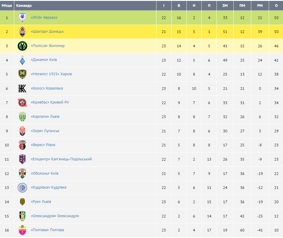 ЛНЗ та Шахтар мають однакову кількість очок. Черкаська команда зіграла на один матч більше, але випереджає «гірників» завдяки перемозі в особистій зустрічі (4:1) в першому колі і очолює турнірну таблицю.